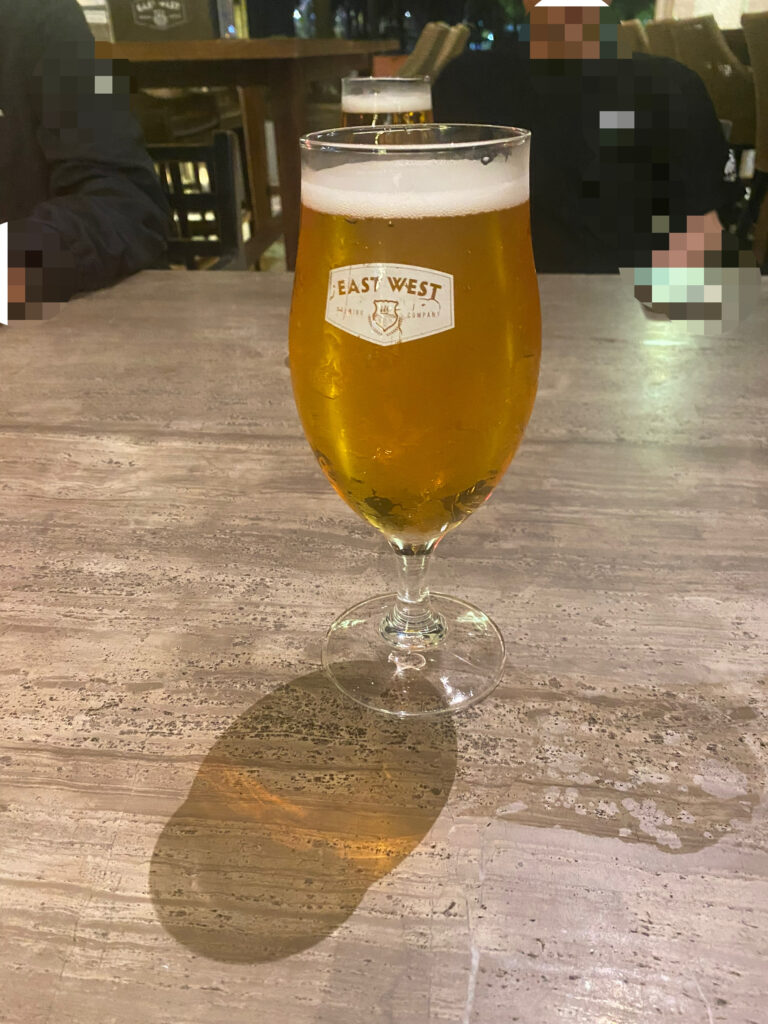 ダナンはビーチリゾートのイメージが強いですが、実はクラフトビール文化もじわじわと根付いています。その中心的存在ともいえるのがEast West Brewing。在住者の間でも「ビールならここ」と名前が挙がる人気ブルワリーです。観光客だけでなく欧米系の在住者も多く、味のクオリティは折り紙付き。今回は定番のピルスナーをじっくり味わってきました。