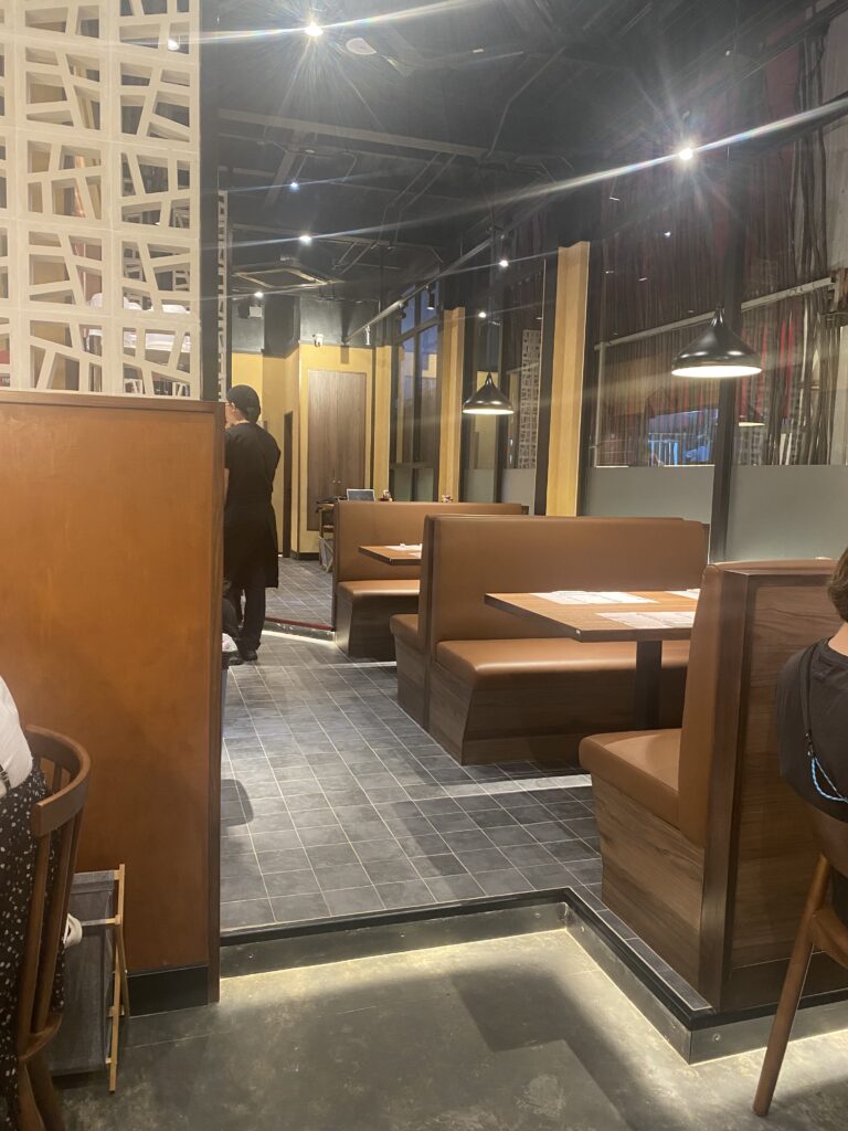 外観は日本のラーメン店を思わせる親しみやすい佇まい。赤や黒を基調とした看板が目印で、遠くからでも分かりやすい印象です。派手すぎないながらも存在感があり、「ここでラーメンが食べられる」と直感的に伝わる外観。夜になると照明が灯り、より一層入りやすい雰囲気になります。