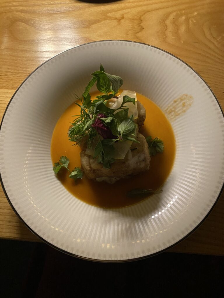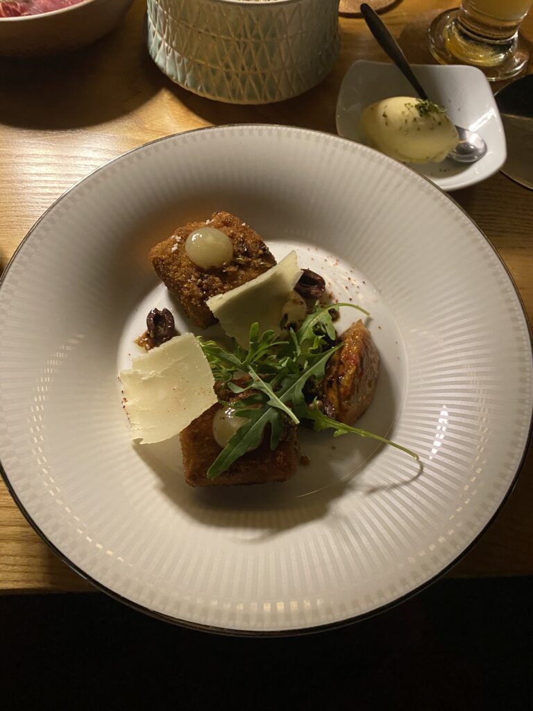 外はカリッと香ばしく、中はしっとり濃厚なポークの旨味。テリーヌのなめらかさと揚げ衣の食感の対比が絶妙で、前菜から期待を高めてくれる一品でした。